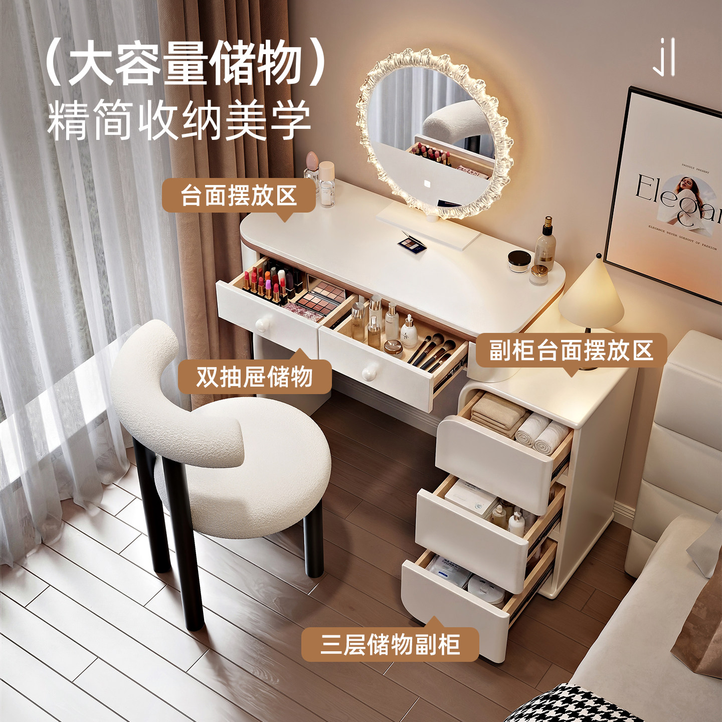 梳妆台2026新款国贴小户型化妆桌实木卧室斗柜收纳一体储物化妆台