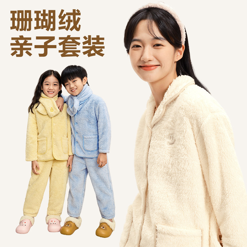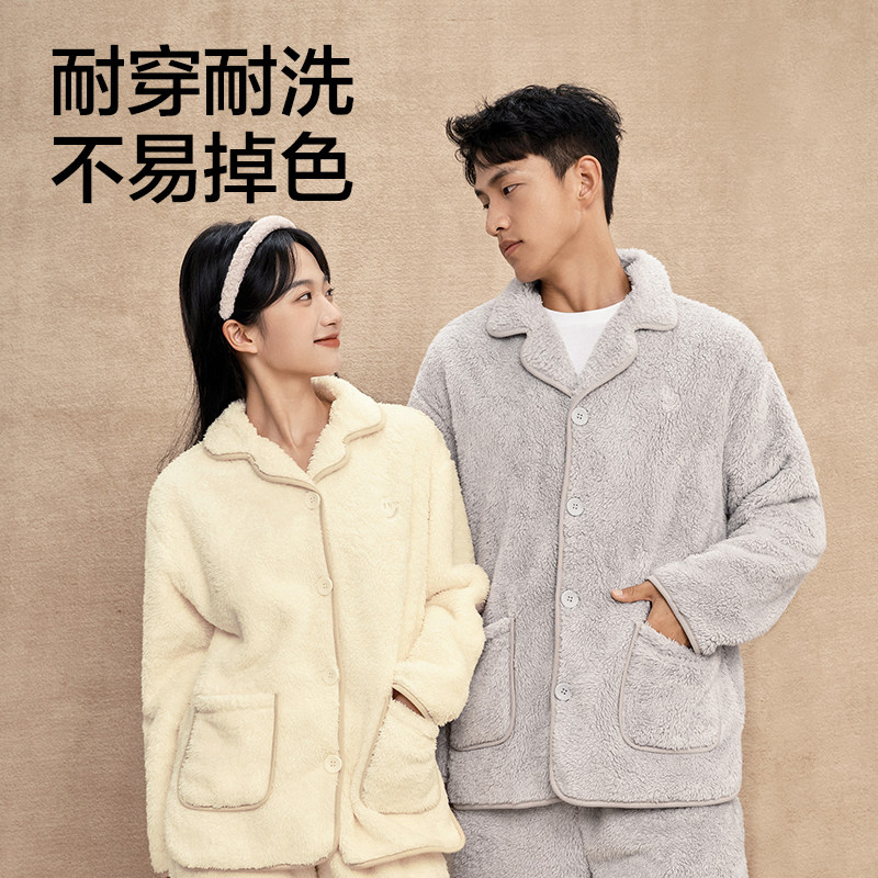 网易严选珊瑚绒睡衣女2025秋冬新款翻领保暖情侣家居服男舒适亲子
