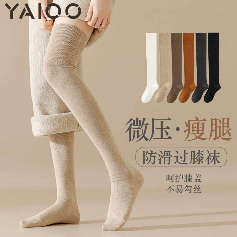 雅鹿过膝袜子女长筒袜秋冬加厚小腿袜长袜长腿棉袜护膝袜套多规格