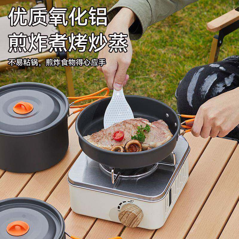 户外套锅锅具野炊野营露营用品煎锅便携水壶装备炊具餐具野外套装