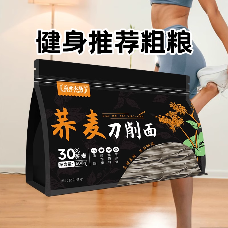 盖亚农场荞麦刀削面500g袋装方便速食面条宽面拌面烩面拉条挂面