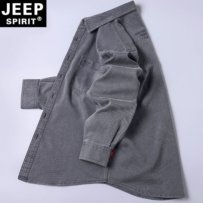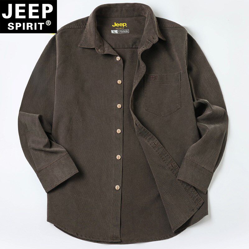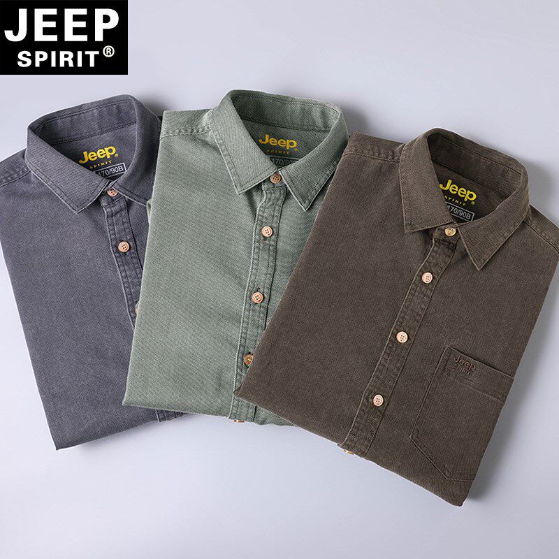 JEEP吉普男士衬衫春夏薄款弹力抗皱免烫男装外套宽松大码中年衬衣