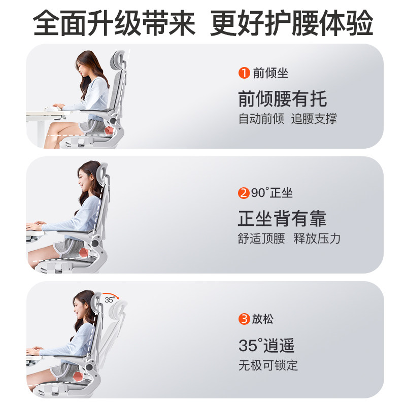 TotGuard人体工学椅电脑椅子家用办公久坐舒适撑腰座椅E1