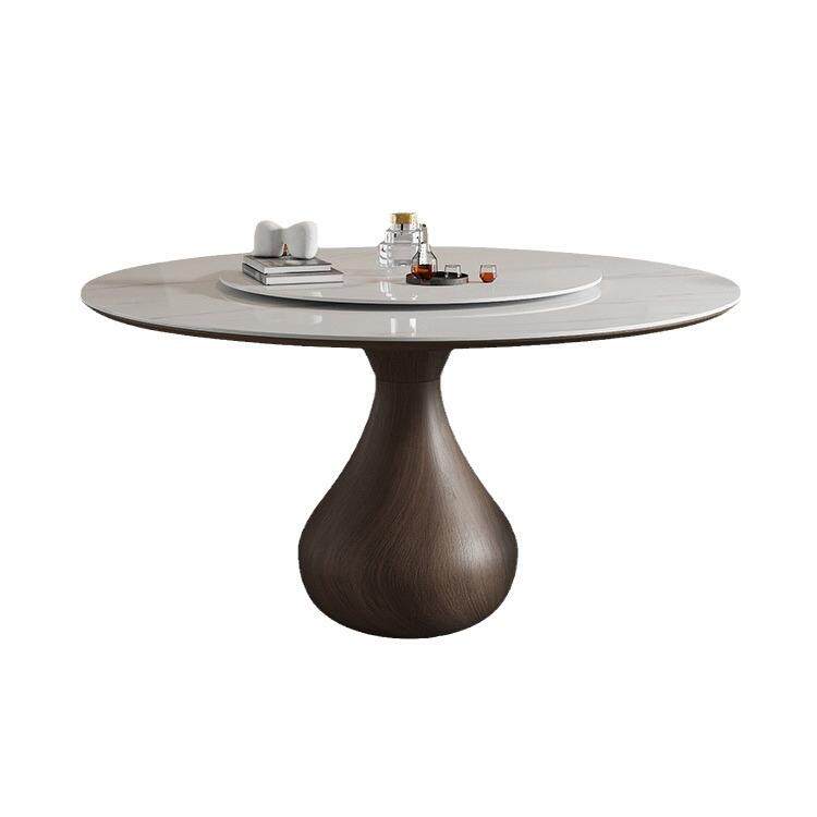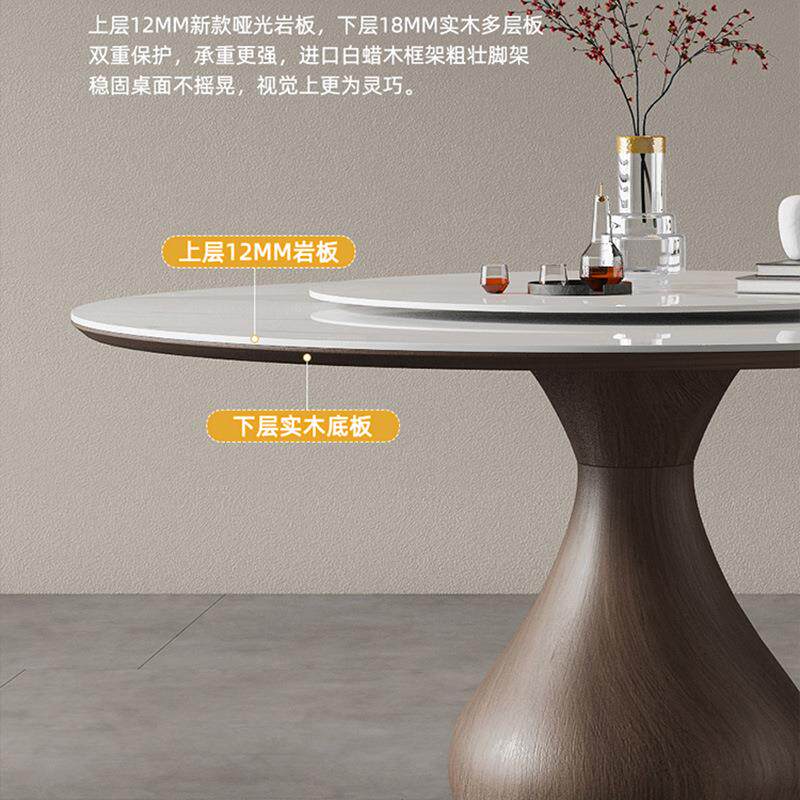 意式实木圆形餐桌家用复古高端现代简约饭桌转盘亮光岩板水滴圆桌