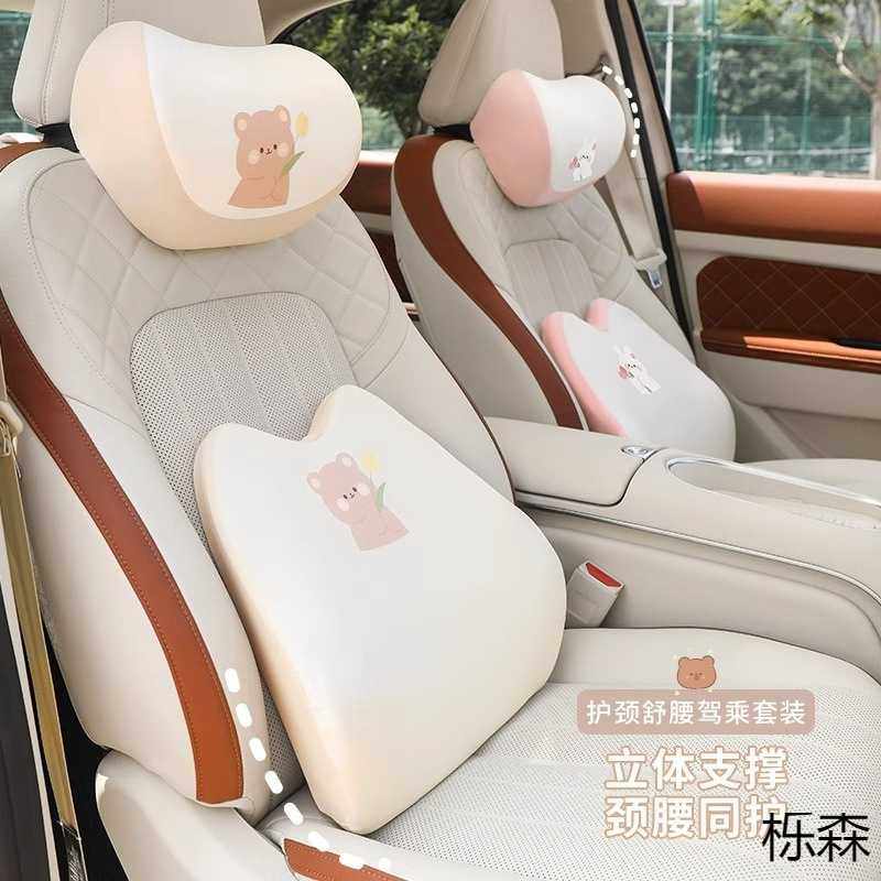 汽车头枕腰靠冰丝记忆棉车内可爱卡通护腰护颈睡觉车载靠枕护颈枕