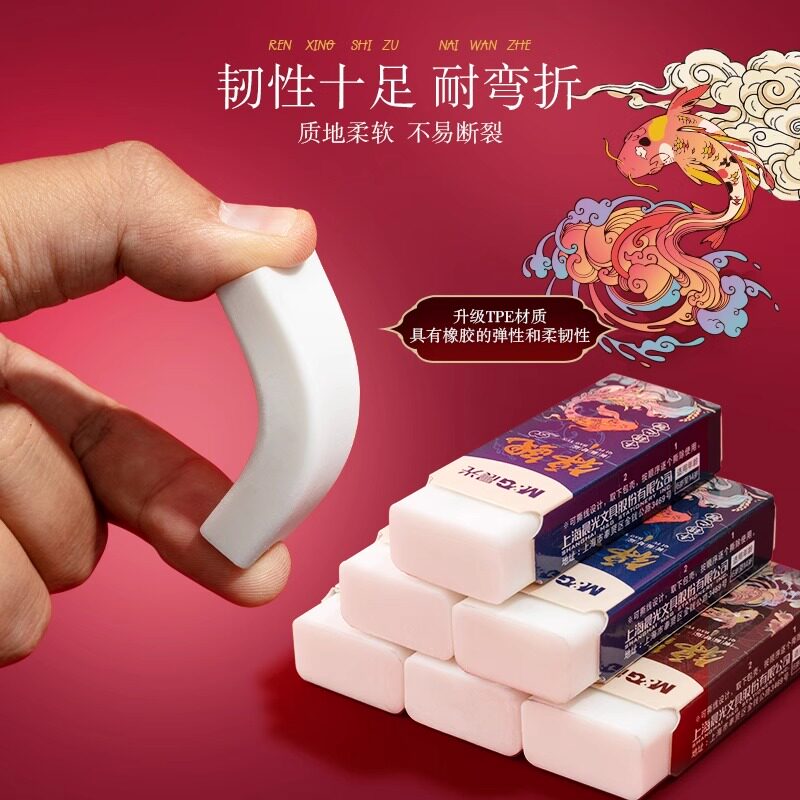 晨光锦鲤聚干净真集屑橡皮擦小学生专用擦字成线擦拭成条超干净不易留痕2B少屑橡皮幼儿园儿童素描美术橡皮擦
