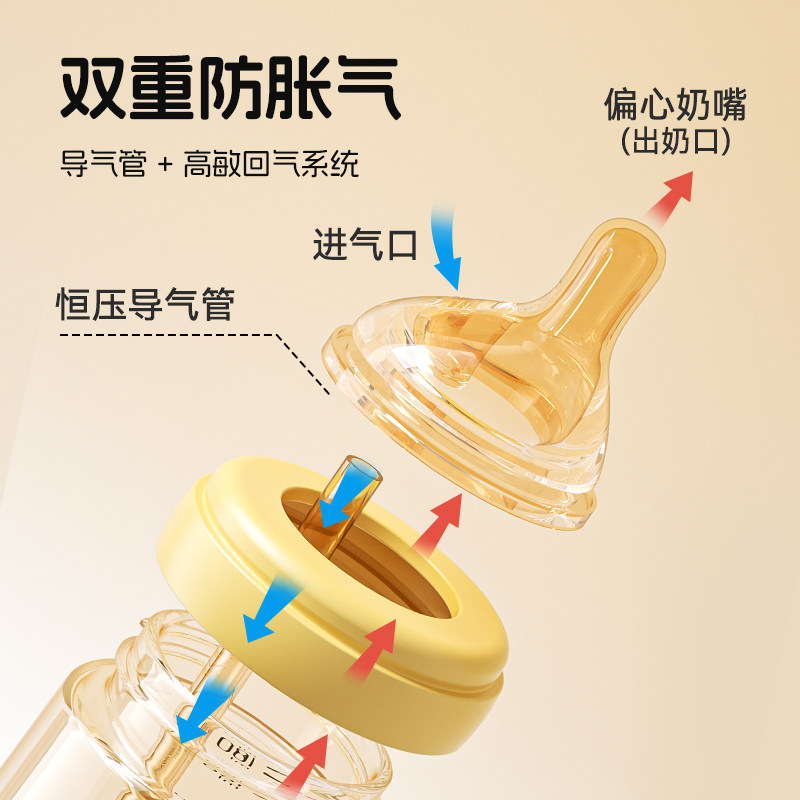 BeBeBus钻光奶瓶ppsu新生宝宝婴儿歪头防胀气呛奶0-3-6个月以上用