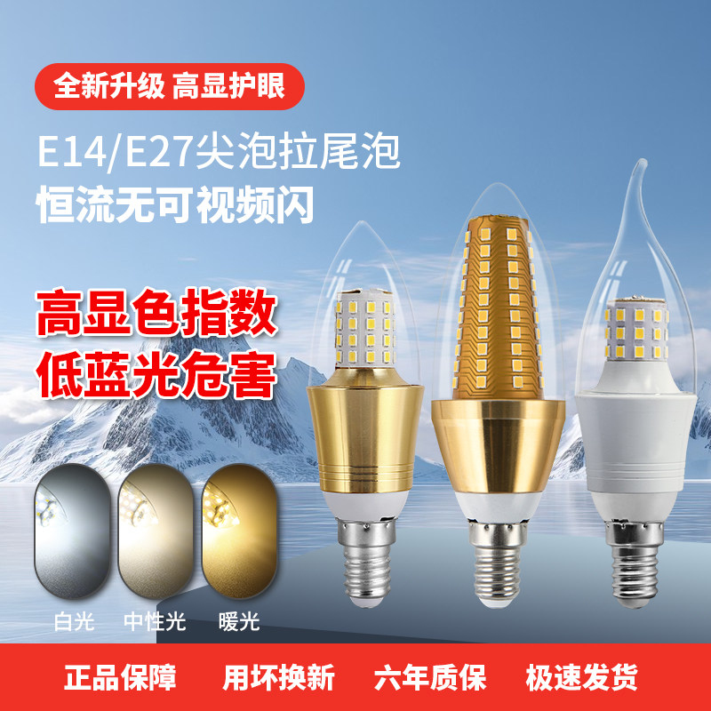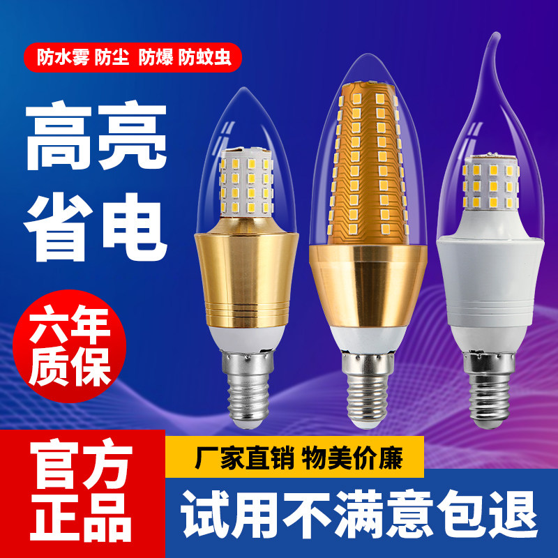 超亮家用节能LED蜡烛灯欧式吊灯光源e14小螺口拉尾玉米大螺口照明