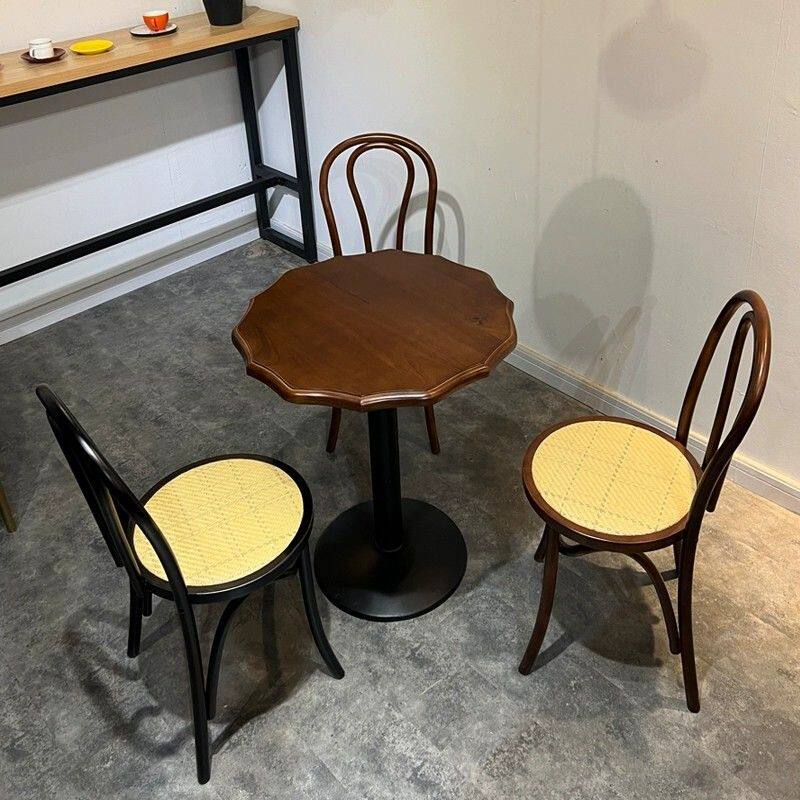 2025新餐厅桌椅商用咖啡厅复古洽谈实木圆桌椅快餐饮食堂面馆奶茶