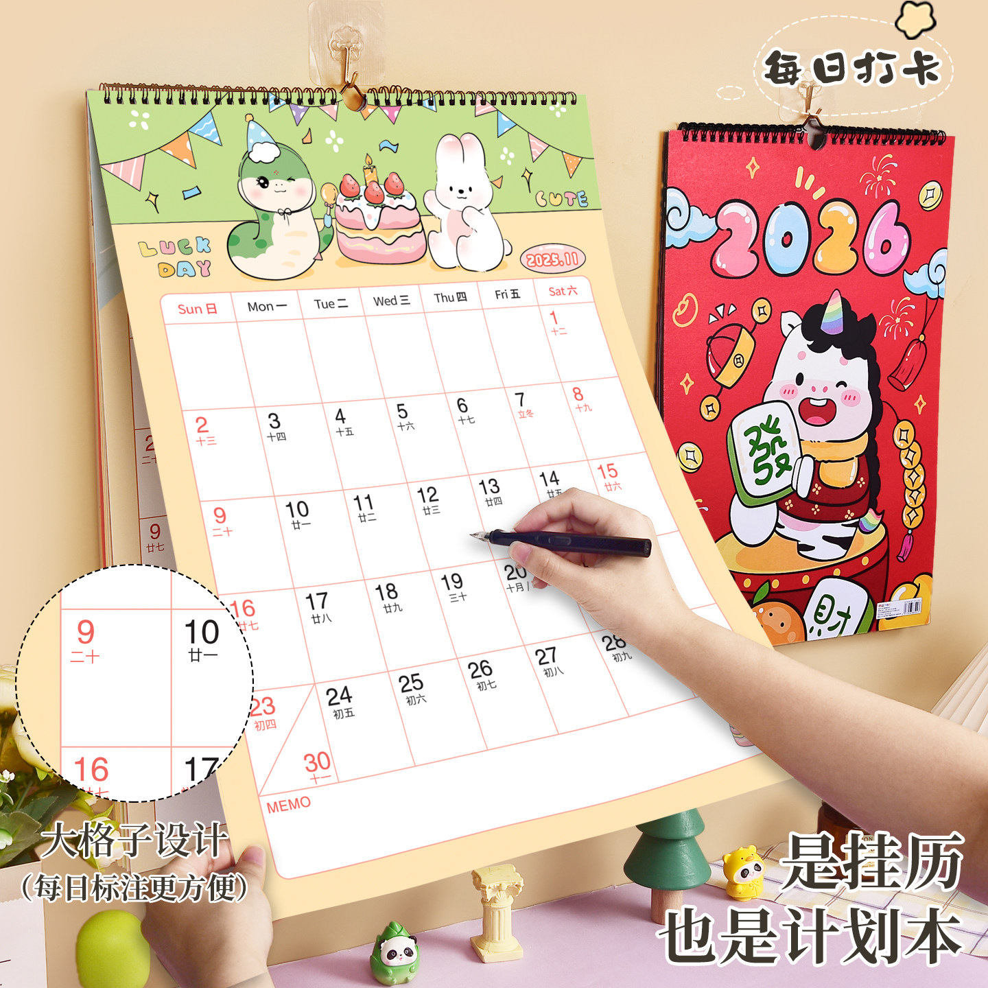 2026年台历创意简约桌面摆件马年可爱自律打卡日历本计划本ins风2025年考研日历商务办公记事月历台历本定制