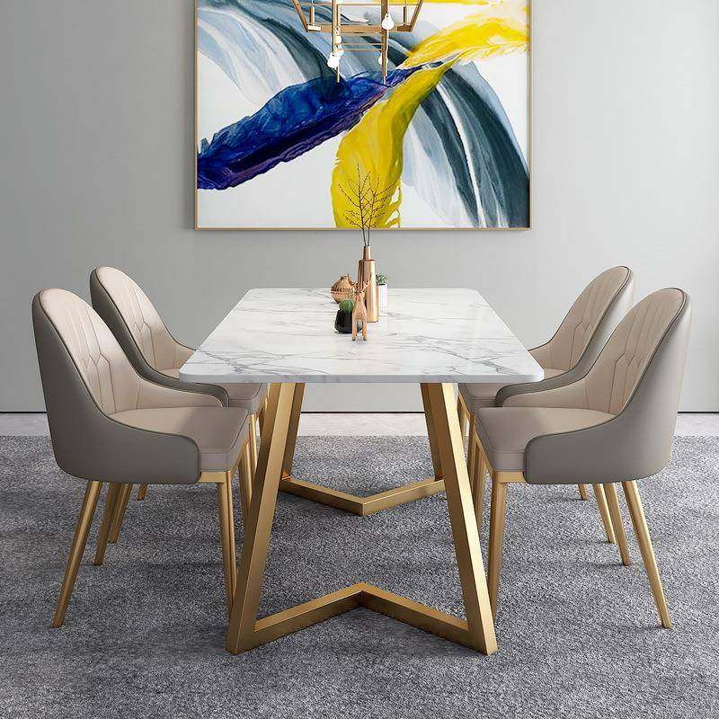 轻奢大理石餐桌椅组合现代简约家用长方形饭桌咖啡厅岩板休闲桌椅