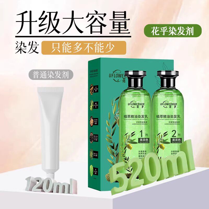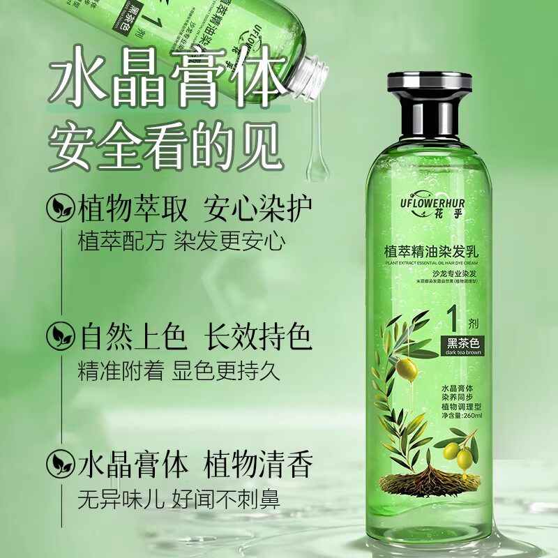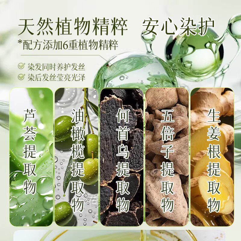 花乎植萃精油染发乳遮盖白发染发膏水晶膏体生姜何首乌染护一体