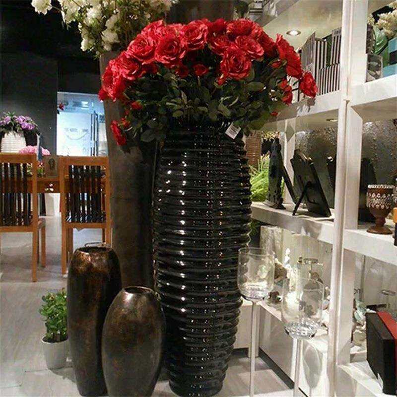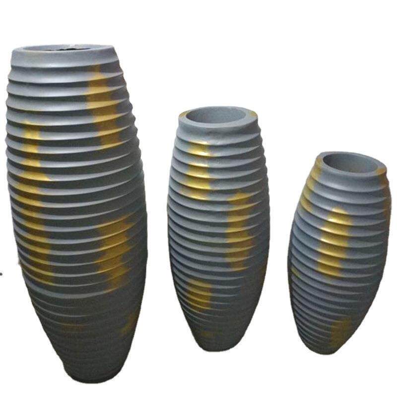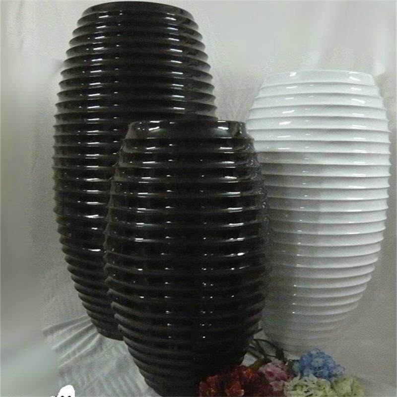 厂家直销花瓶室内大肚罗纹玻璃钢花盆落地大花器装饰花插摆件