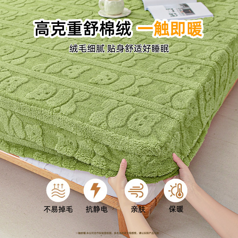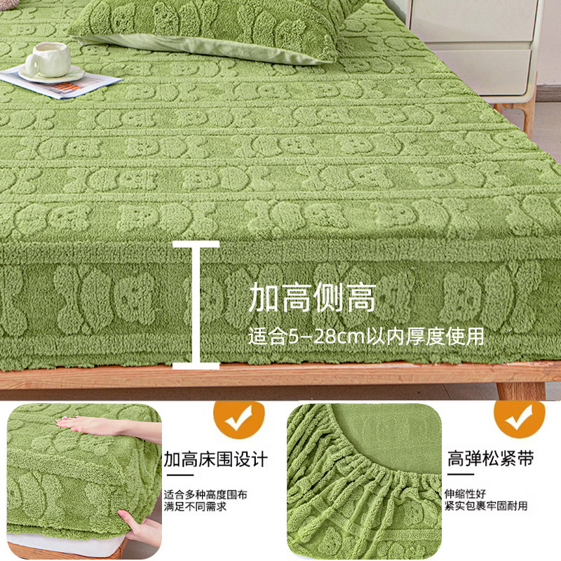 冬季加厚床笠牛奶绒床垫保护套春秋三件套床褥垫防尘罩枕套全包