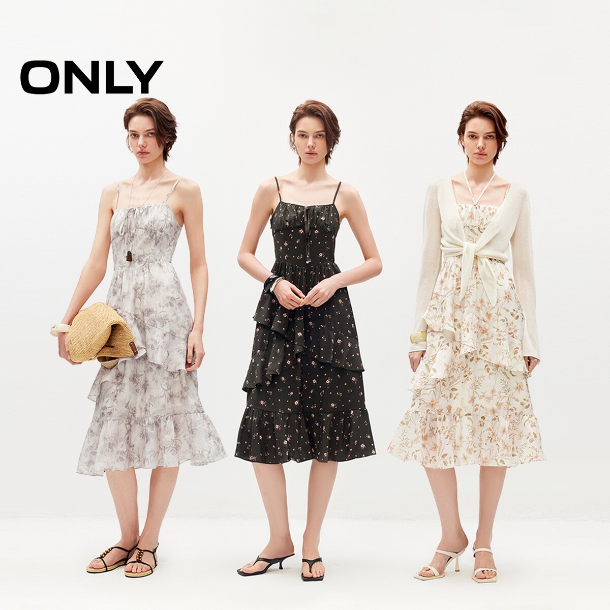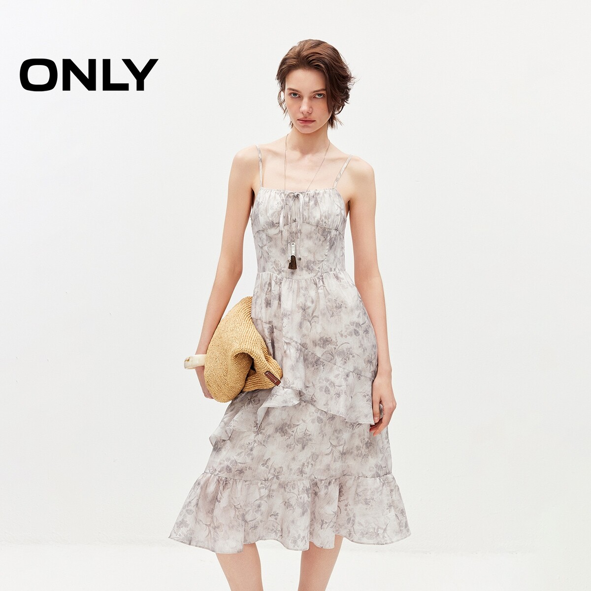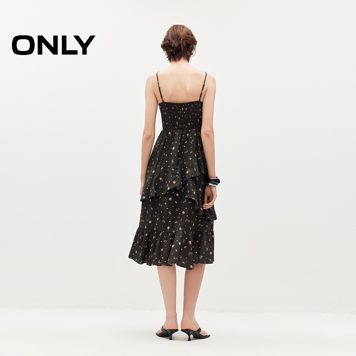 ONLY2026春季新款法式优雅裙子收腰花朵印花中长款吊带裙连衣裙女