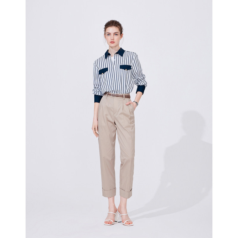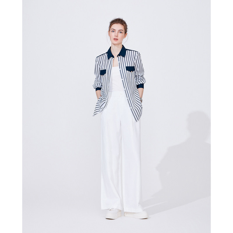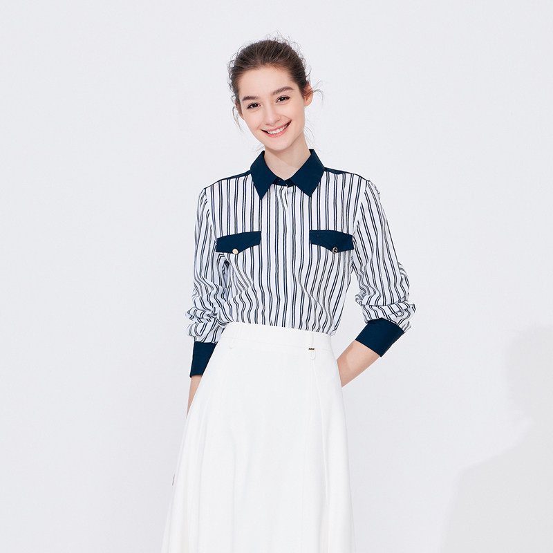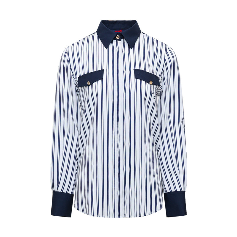 [明星同款]Navigare意大利小帆船长袖衬衫女春季时尚百搭条纹衬衣