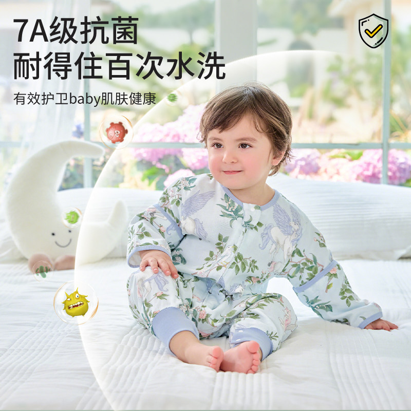 小魔箭桑蚕丝婴儿纱布睡袋儿童春秋夏季女宝宝分腿防踢被四季通用