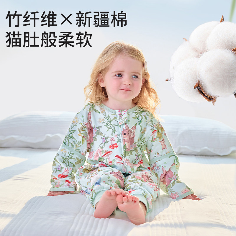 cutelife【轻羽】宝宝秋冬睡袋竹棉分腿儿童防踢被子加厚防寒A类