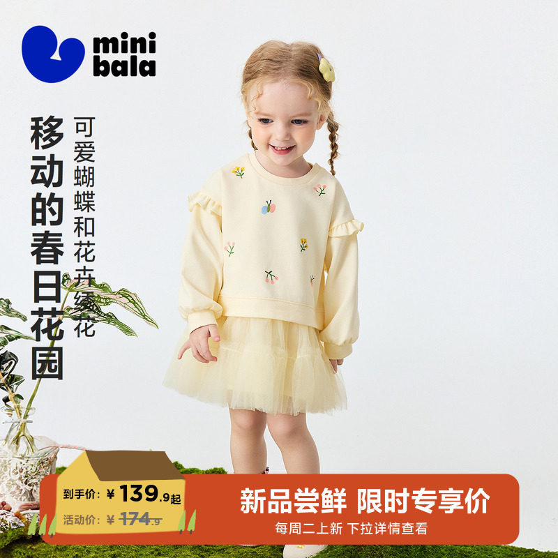 迷你巴拉巴拉女童宝宝裙子儿童卫衣拼网纱甜美连衣裙2026春新品