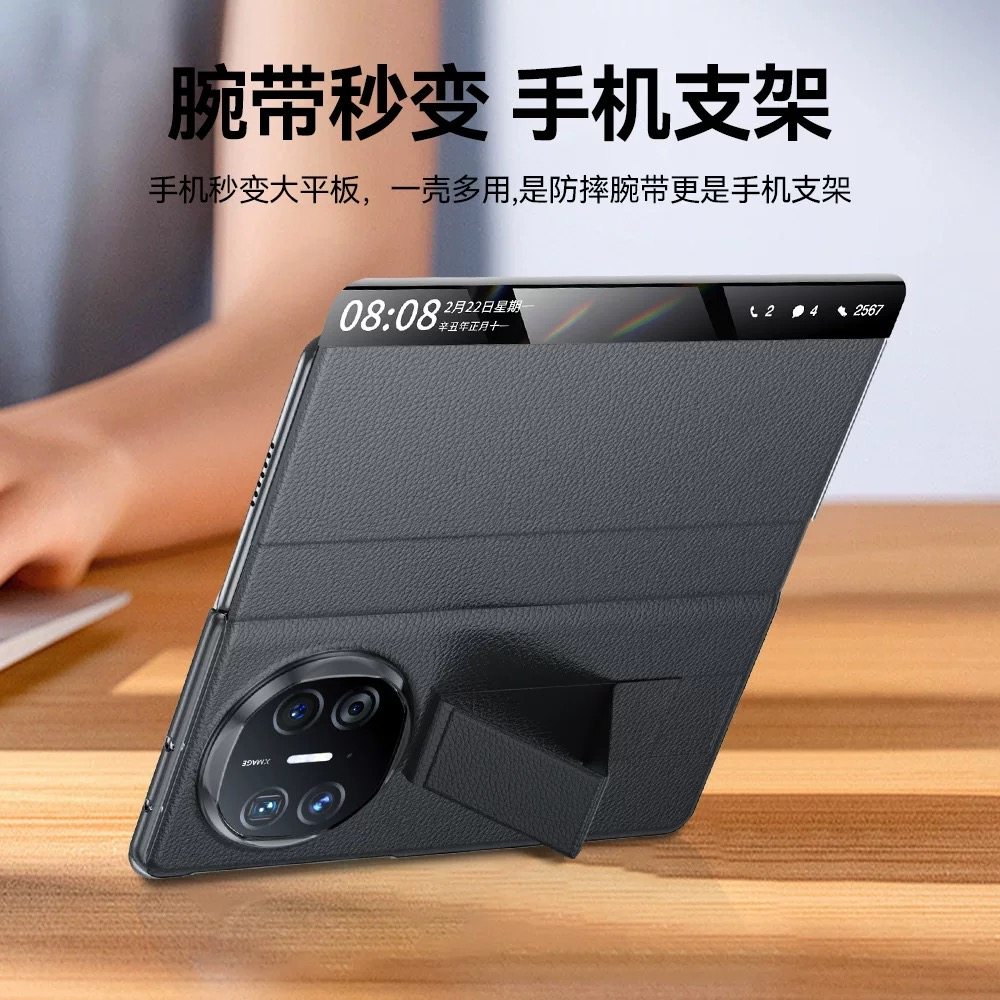 腕带适用华为matex5手机壳MATEX6保护套新款x3外壳典藏版头层真皮自带支架镜头全包保护膜折叠屏全包防摔原装