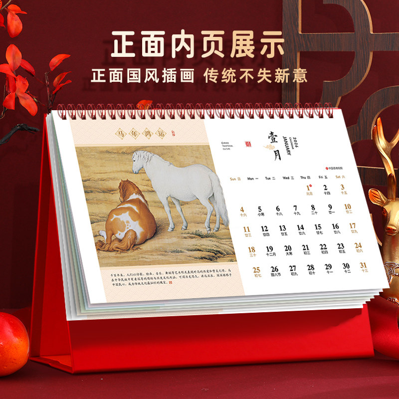 台历2026年新款日历桌面摆件办公室中国风马年创意翻页工位工作打卡计划本礼盒企业广告红色喜庆礼品月历定制