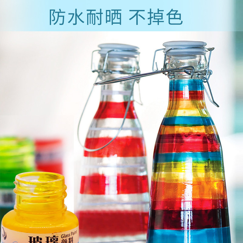 贝碧欧爱饰玻璃颜料防水手绘透明彩绘硅质亚克力画塑料金属表面上色绘画创意窗彩有机陶瓷光亮亚光玻璃马克笔