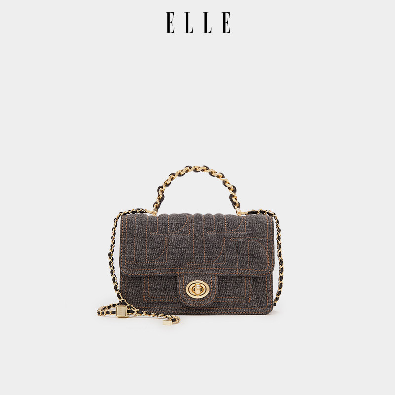ELLE女包2025新款包包丹宁系列牛仔斜挎包复古丹宁手提单肩小方包