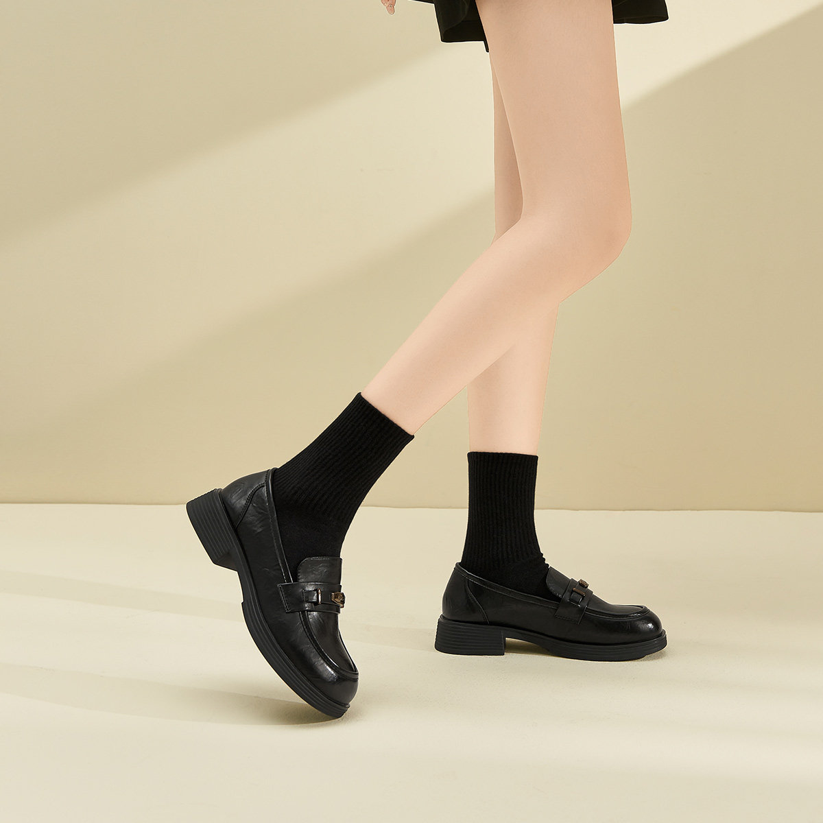 真皮乐福鞋女2025春秋新款英伦风小皮鞋一脚蹬厚底女鞋平底黑单鞋