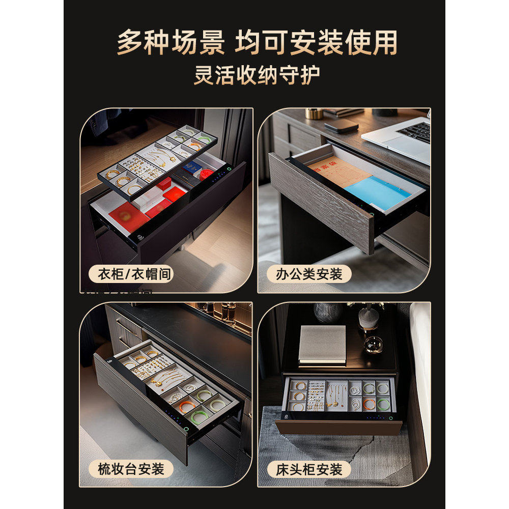 指纹密码抽屉式保险箱小型隐形珠宝首饰盒防盗保险柜家用2026新款