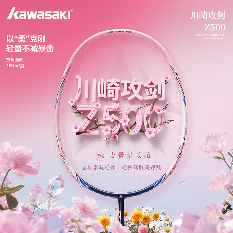 川崎KAWASAKI攻剑Z500羽毛球拍女生学生专业单拍超轻5U碳纤维双拍