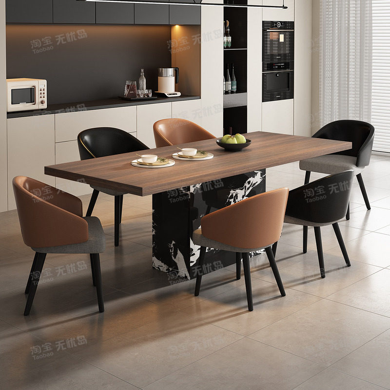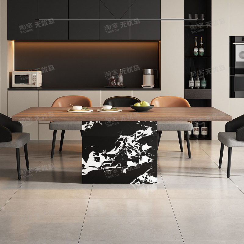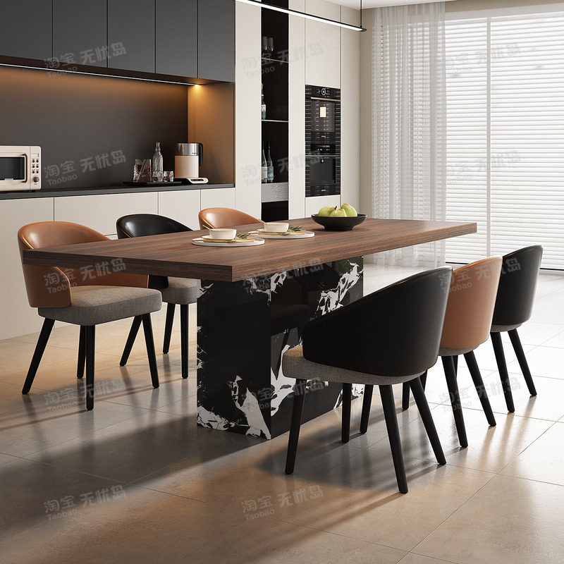 意式现代轻奢极简岩板餐桌椅组合高端别墅设计师高级餐桌岛台一体