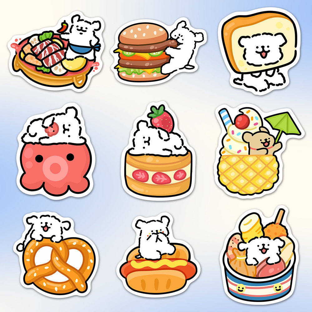 100张线条小狗美食合体可爱高颜值贴纸防水高清ins电脑课桌手机壳