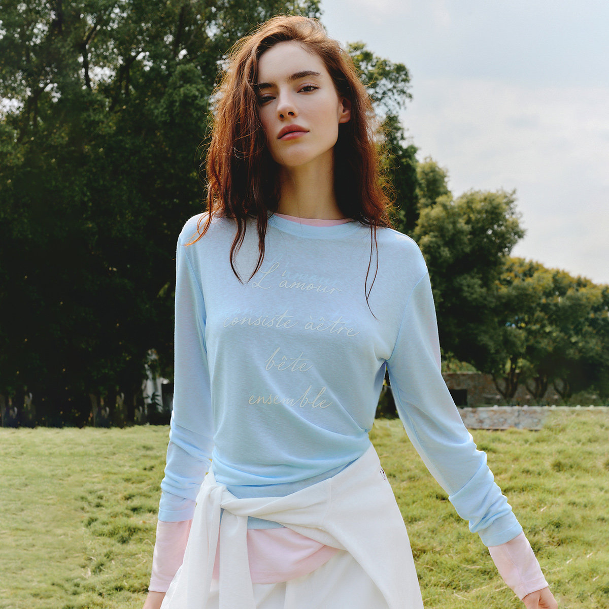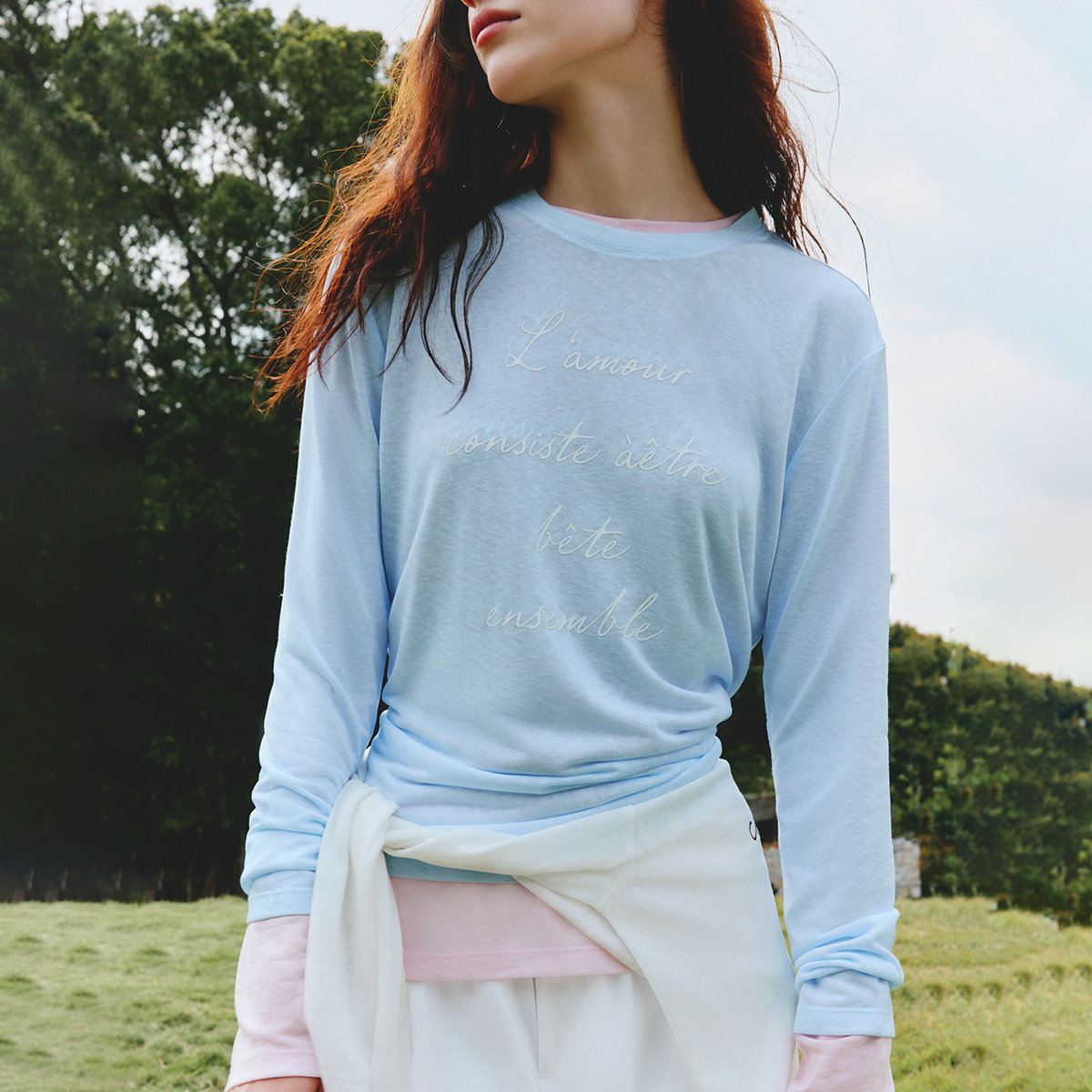 面料透肤柔软,浪漫感字母胶印