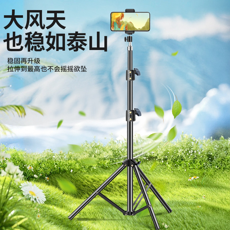 加厚手机支架直播摄影拍照专用落地三脚支撑架带补光灯户外便携式自拍杆三脚架网红视频拍摄录制多功能三角架