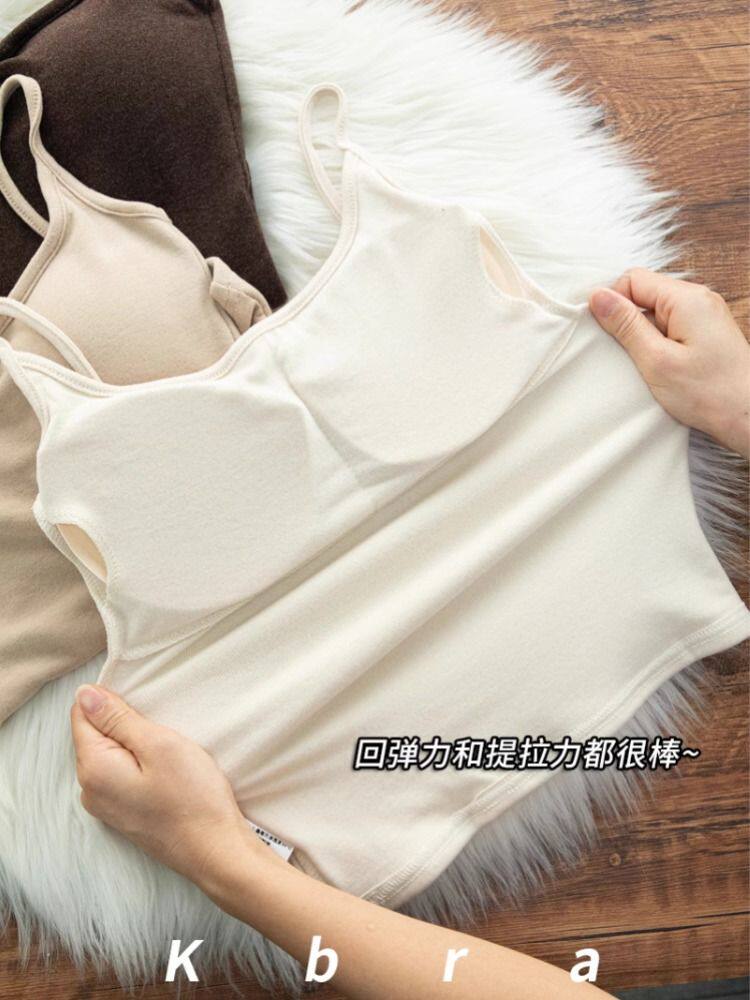 磨毛保暖背心女2025冬新款带胸垫一体无痕吊带打底内衣加绒加厚