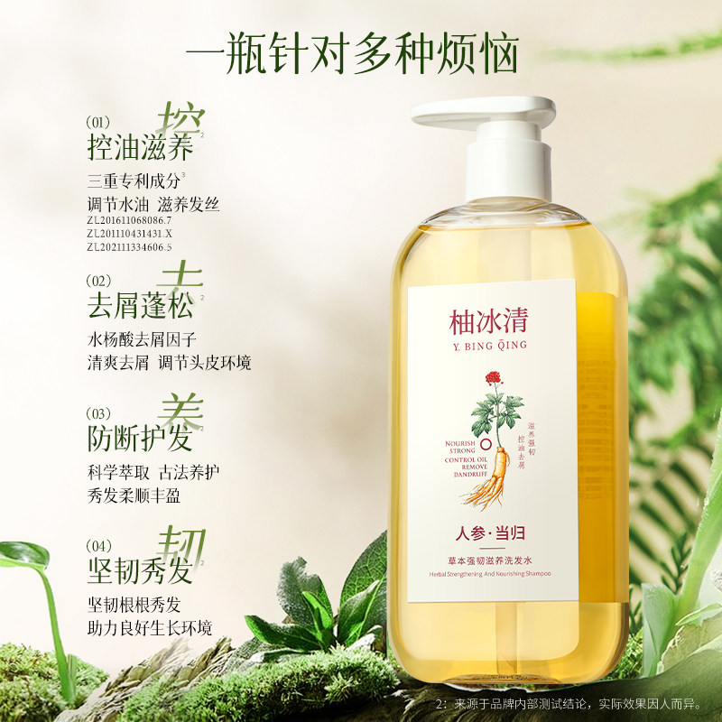 柚冰清洗发水草本人参滋养控油韧发防断发丝强健官方旗舰店正品