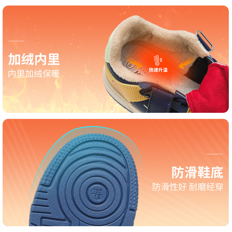 巴布豆童鞋儿童板鞋2025新款冬季加绒二棉鞋男童鞋子女男孩运动鞋