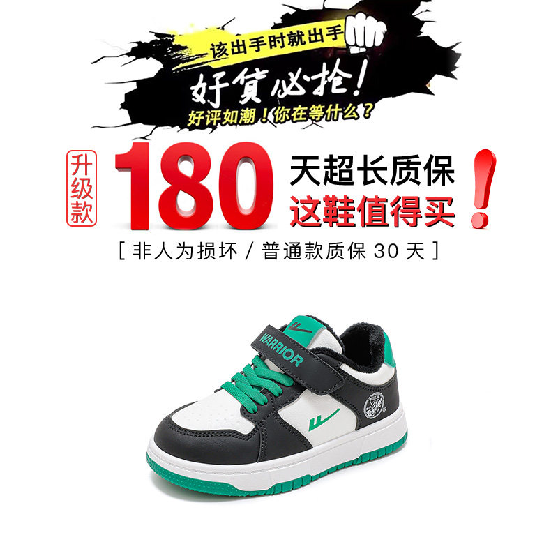 特步童鞋儿童小白鞋男童板鞋秋冬男孩学生白色运动鞋女童鞋子棉鞋