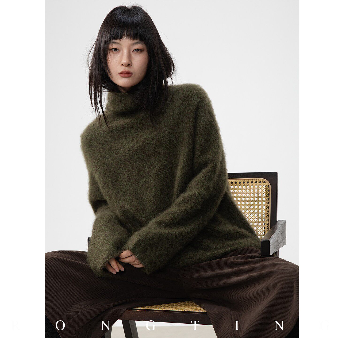 品牌高级感羊毛衫女半高领宽松毛衣秋冬加厚羊绒长袖针织打底衫新
