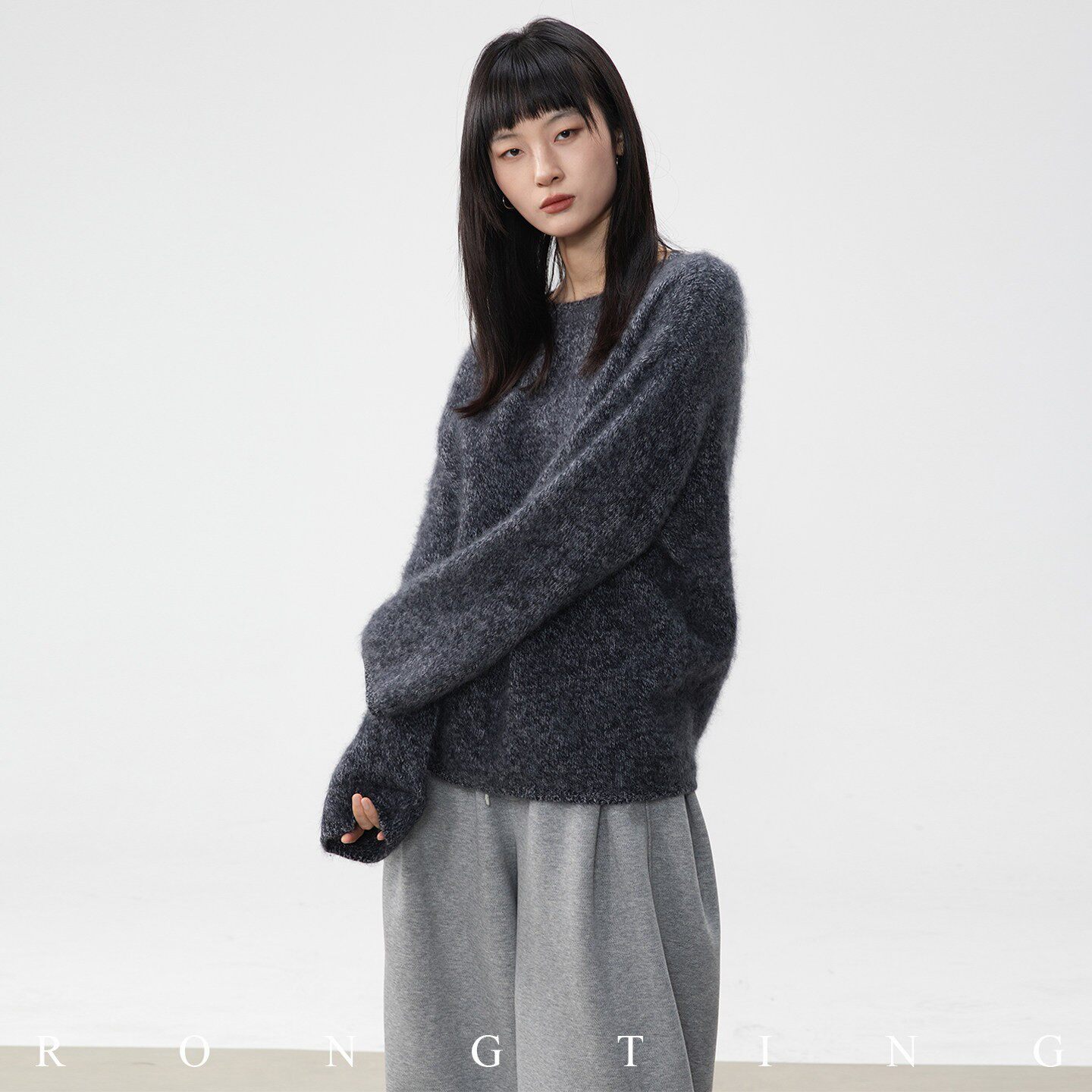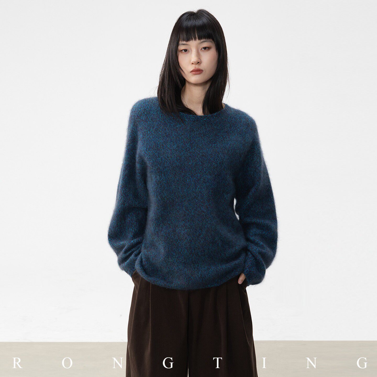 绒汀 RONGTING【定制花纱】 山羊绒拉绒拉毛+绵羊毛女针织打底衫