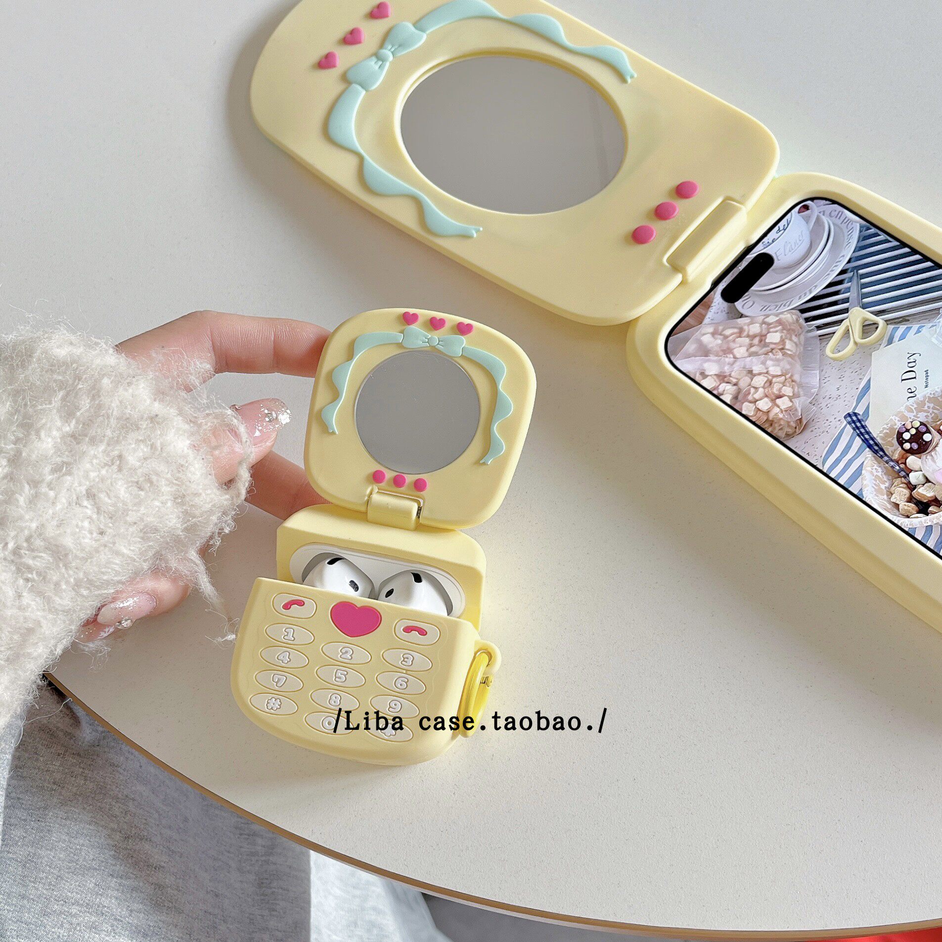 爱心大哥大镜子适用苹果耳机保护套airpods4无线蓝牙耳机壳四三代airpodpro2二代ipod耳机盒airpods3硅胶软壳