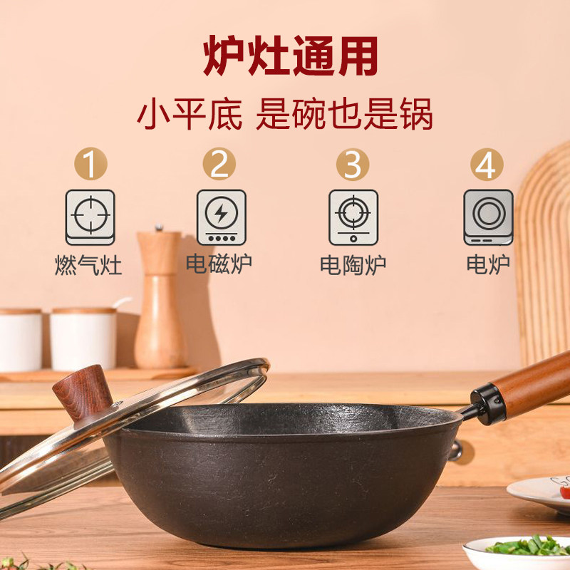 铸铁锅迷你小铁锅家用小炒锅一人食无涂层不粘锅平底小号炒菜奶锅