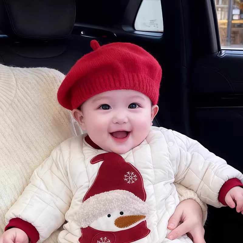 婴儿帽子春秋款贝雷帽小宝宝毛线帽四季男女宝新生儿针织帽小月龄