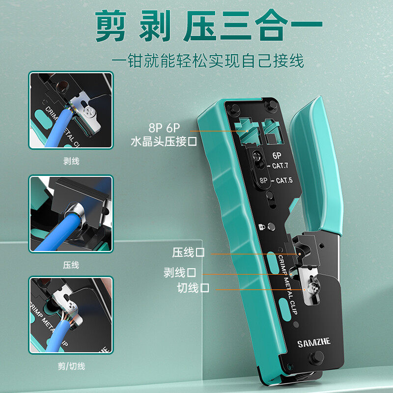 山泽网线钳子家用超六类水晶头压线专业级套装夹线钳剪线钳6P8P