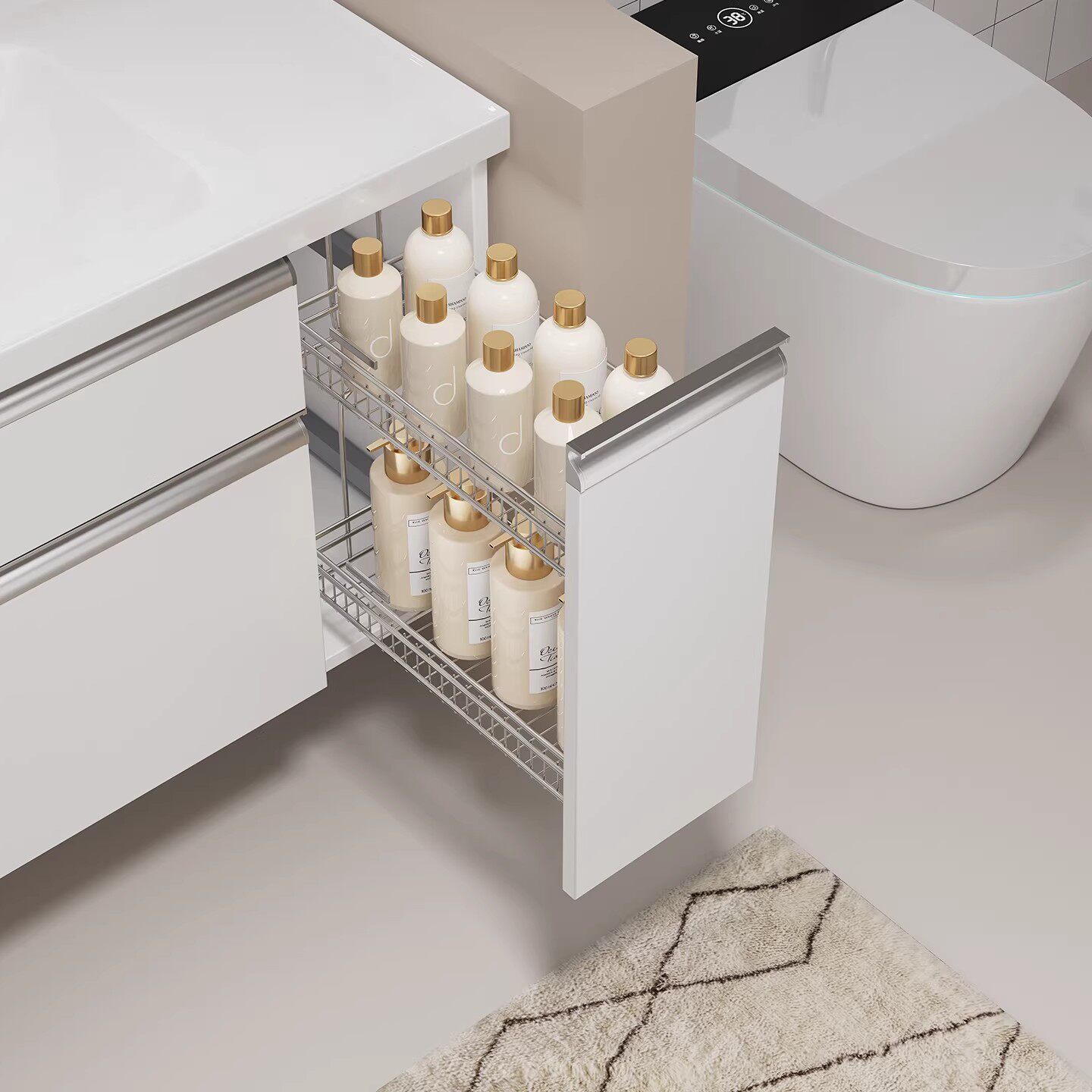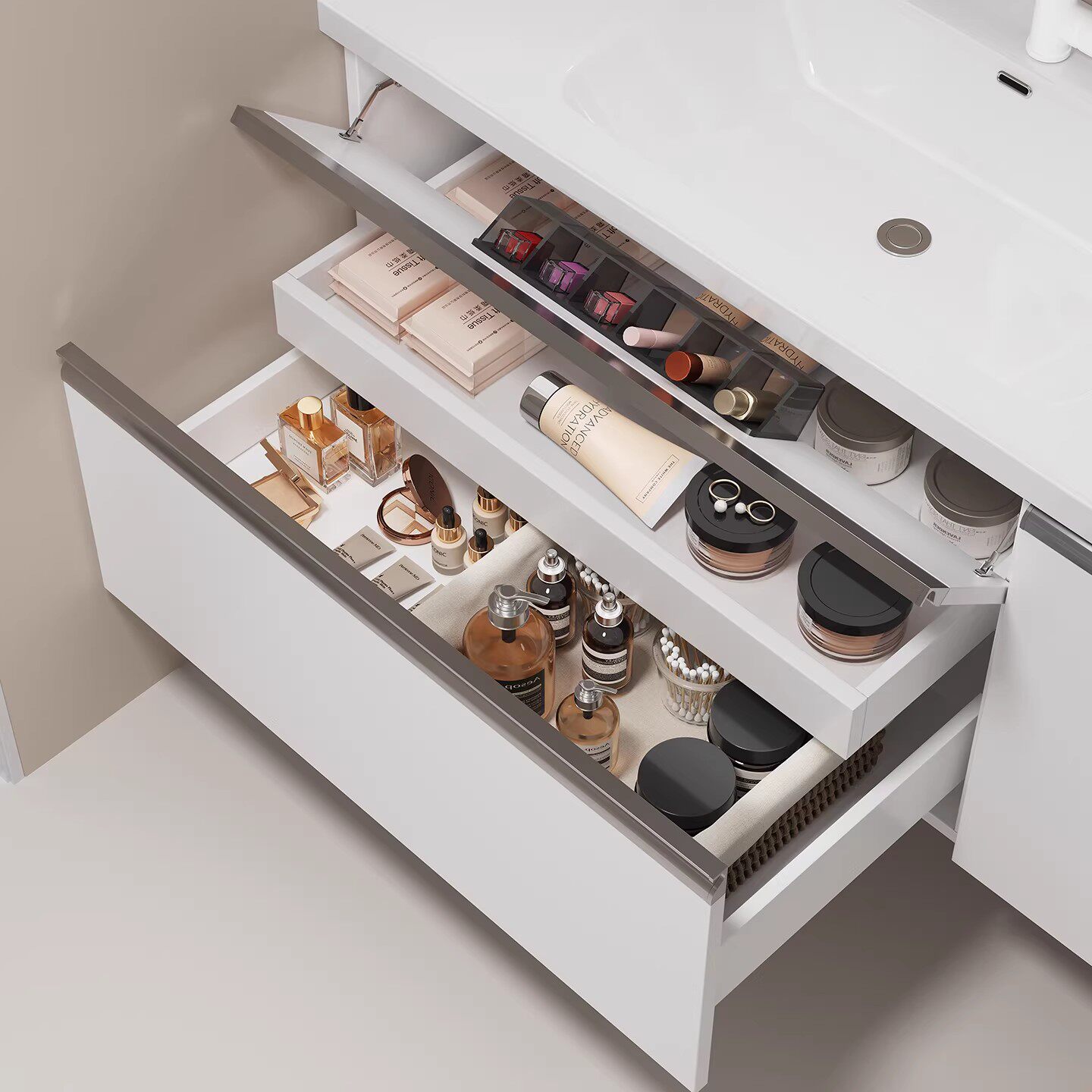 日式奶油风大收纳浴室柜组合抽屉拉篮洗漱手脸台陶瓷一体盆卫浴柜