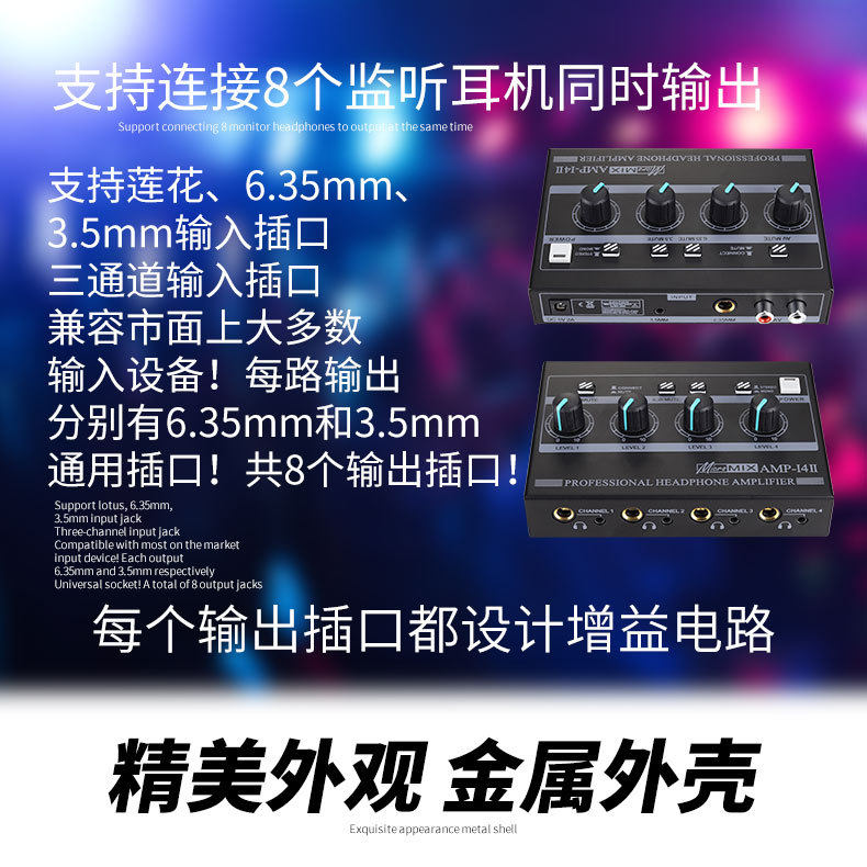 4路便携立体声前置小型信号放大器专业乐器 3.5低噪音音频混音器
