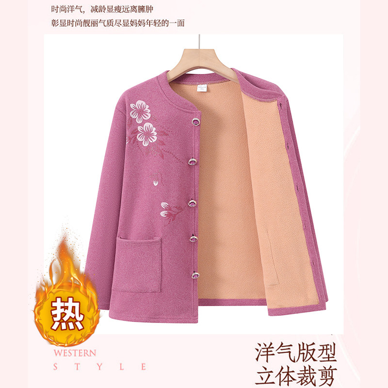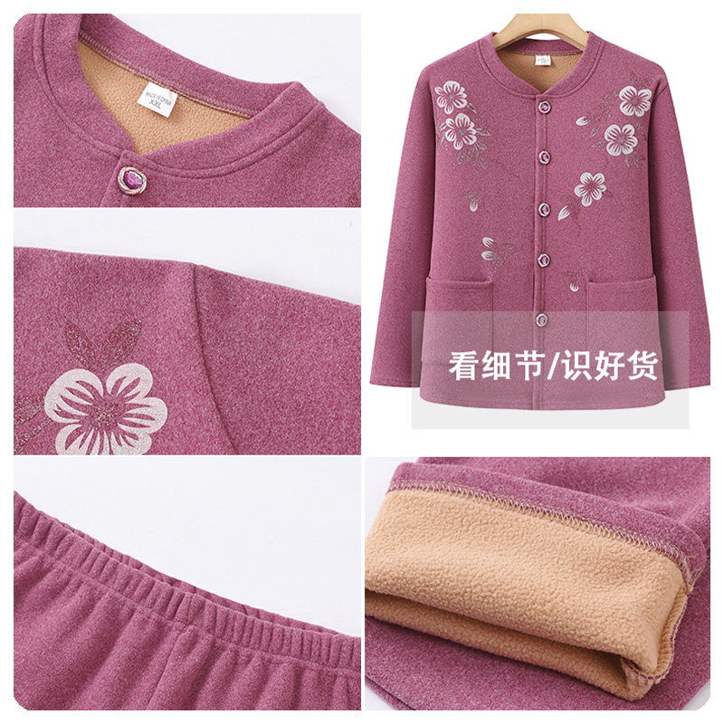 奶奶秋衣秋裤开衫加绒套装中老年人女装秋冬保暖内衣打底衫洋气