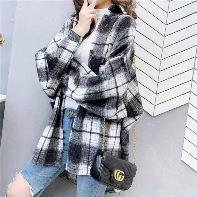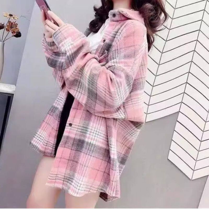 港风加厚磨毛格子衬衫女2025时尚宽松中长款休闲外套中老年厚款