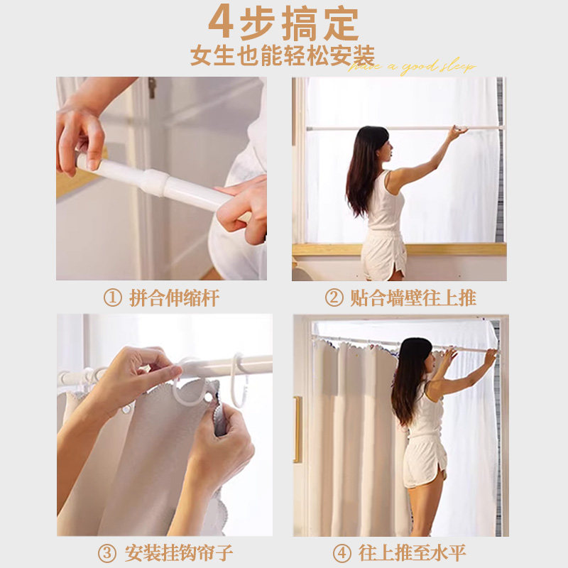 窗帘遮阳帘免打孔伸缩杆遮挡帘客厅隔断帘新遮光卧室厨房儿童房