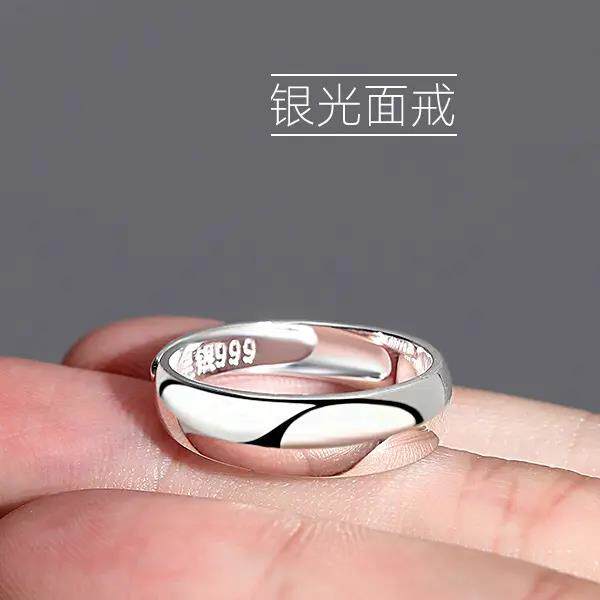 光面戒指女足银男生开口尾戒男戒指食指素圈男女潮情侣对戒可调节